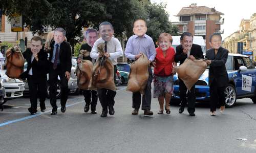 羅馬示威者扮做G8成員國領導人
