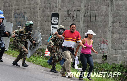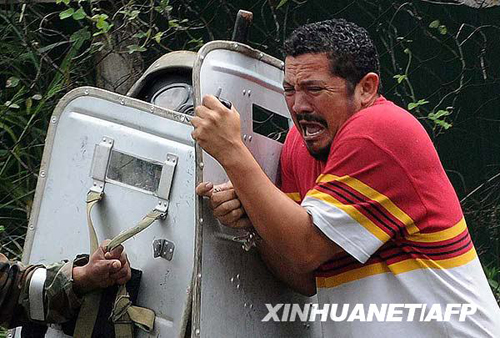 7月30日,在洪都拉斯首都特古西加爾巴近郊,士兵和警察驅散試圖阻斷公路的示威者。當天,洪都拉斯被罷免總統塞拉亞的支持者在特古西加爾巴舉行大規模游行,并與當地軍警爆發大規模沖突,多人受傷。新華社/法新