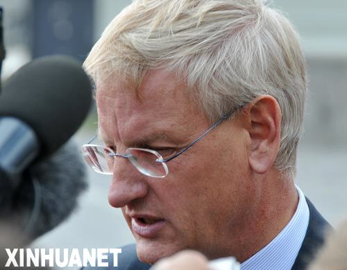 9月4日,在瑞典首都斯德哥爾摩舉行的歐盟非正式外長會議之前,歐盟輪值主席國瑞典外交大臣卡爾·比爾特向新聞界發表講話。當日,比爾特敦促伊朗通過談判而不是對抗解決伊朗核問題。新華社記者吳平攝
