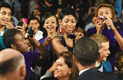 在演講中,奧巴馬要求學(xué)生刻苦用功、設(shè)立目標(biāo)、擔(dān)負(fù)起個(gè)人教育的責(zé)任。 在答問環(huán)節(jié),一名學(xué)生問他對(duì)想當(dāng)上美國總統(tǒng)的人有何忠告?奧巴馬告誡說,要很小心貼在Facebook上的個(gè)人資料,因?yàn)槟贻p時(shí)會(huì)犯錯(cuò),做蠢事,到長(zhǎng)大找工作時(shí)就會(huì)有人上網(wǎng)搜索你曾經(jīng)貼到網(wǎng)上的東西,“在YouTube時(shí)代,無論你做什么,將來都可能再被提起”。