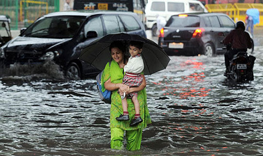 印度首都新德里10日早晨遭到大雨襲擊,致使城市交通癱瘓。許多政府機構、公司和商店因工作人員無法上班而關閉。