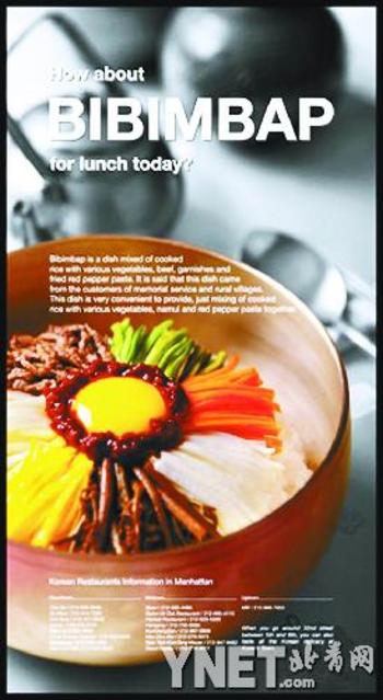 黑田勝弘提到的美國一家報紙是指《紐約時報》,該報21日在A版23面刊登了標題為《今天中午吃拌飯如何?》的整版彩色廣告。該廣告是韓國名牌綜藝節目《無限挑戰》的編導金泰浩(音譯)和韓國另外一名宣傳專家、誠信女子大學客座教授宋迥泰(音譯)共同制作的,旨在向全世界宣傳韓餐文化。