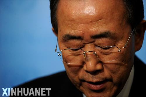 1月13日,聯(lián)合國秘書長潘基文在紐約聯(lián)合國總部向媒體通報(bào)聯(lián)合國人員在海地地震中的傷亡情況。新華社記者申宏攝