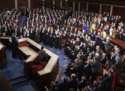 美國總統(tǒng)奧巴馬發(fā)表上任后的首份國情咨文。