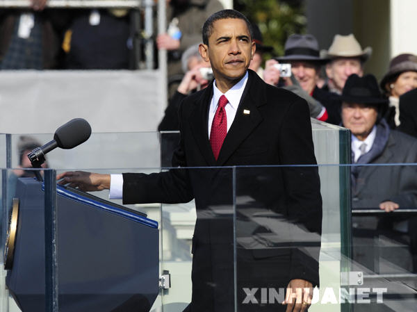2009年1月20日,美國總統奧巴馬在就職儀式上發表就職演說。當日,奧巴馬在美國國會大廈西側的露天平臺上正式宣誓就任美國第44任總統。 新華社記者張巖攝(資料圖片)