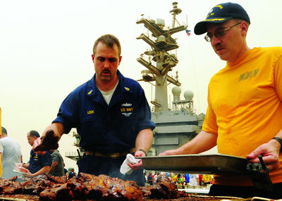 “斯坦尼斯”號之所以能在眾多航母中脫穎而出,與艦艇上“伙頭軍”的不懈努力分不開。托德·米爾斯是艦上的高級廚藝專家,領(lǐng)導(dǎo)著57名烹飪專家和80名餐廳服務(wù)員。在介紹成功經(jīng)驗時,米爾斯說,“有三個條件:高品質(zhì)的食材、確保廚房干凈和安全,如果你能確保這三點,那么就能贏得海軍廚藝大獎”。海軍士官長、艦上餐飲官內(nèi)斯特·法度對此卻有著另一番看法,他說:“主要還是人的因素,我們勝過其他航母的秘訣就是靠態(tài)度、服務(wù)和菜的花色。”