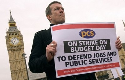 據香港《星島日報》報道,英國公共與商業服務雇員工會(PCS)24日在財相公布預算報告之日,再度組織全國公務員舉行24小時罷工行動,以抗議雇主在裁員賠償方面的決定。