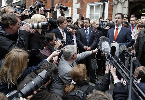 保守黨和工黨均表態(tài),愿與第三大黨自由民主黨商討組建聯(lián)合政府。