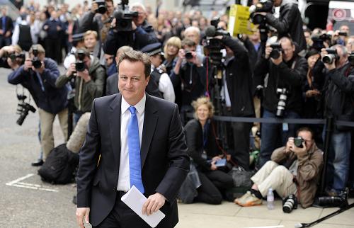5月7日,英國保守黨領(lǐng)袖卡梅倫抵達(dá)英國倫敦一個(gè)俱樂部準(zhǔn)備發(fā)表聲明。英國大選計(jì)票工作當(dāng)日下午結(jié)束,沒有一個(gè)政黨在議會贏得半數(shù)以上議席,從而形成自1974年以來第一個(gè)“無多數(shù)議會”。但保守黨議席數(shù)大大超過工黨,成為議會第一大黨。新華社/路透