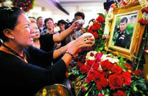 17日上午9點(diǎn)20分左右,綽號(hào)“紅色參謀長(zhǎng)”的“紅衫軍”強(qiáng)硬派領(lǐng)導(dǎo)人卡迪亞·薩瓦滴蓬在醫(yī)院死亡。卡迪亞將軍13日在示威地點(diǎn)內(nèi)接受媒體采訪時(shí)頭部中槍。有“紅衫軍”成員稱,“紅衫軍”示威者進(jìn)行了3分鐘的默哀。