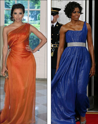 據外媒報道,美國白宮19日舉辦國宴,款待墨西哥總統卡爾德龍夫婦。此間美國第一夫人的穿衣打扮再被媒體拿出來品頭論足。不幸的是,這次米歇爾·奧巴馬竟然與“絕望主婦”伊娃?朗格利亞大撞衫,頗為尷尬!