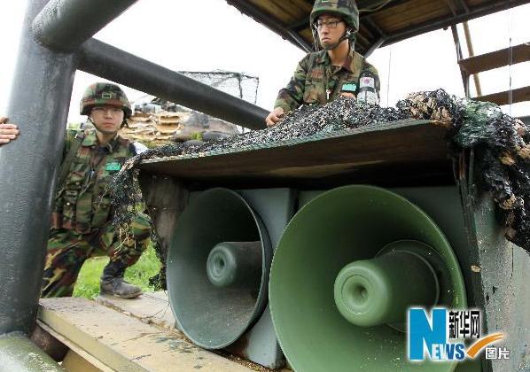 5月24日,韓國士兵在首爾以北韓國-朝鮮軍事分界線附近的揚口郡一個哨所內執勤。哨所里架設了高音喇叭,用以向朝方進行跨界宣傳。朝鮮人民軍中部前線地區司令官24日向韓國方面發出公開警告,要求韓方立即停止在軍事分界線沿線進行的反朝心理戰活動,否則朝鮮將針對這些心理戰目標“進行瞄準射擊,加以擊毀”。 新華社/法新