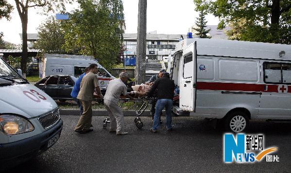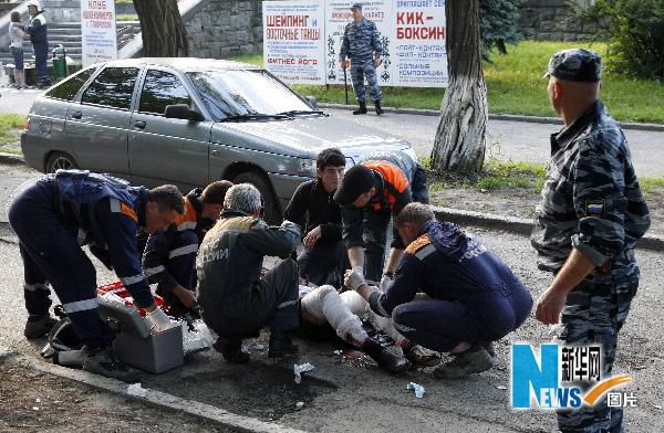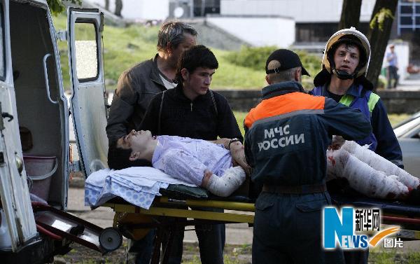 5月26日,救援人員在俄羅斯南部城市斯塔夫羅波爾的爆炸現(xiàn)場(chǎng)救助傷員。當(dāng)日,斯塔夫羅波爾市中心發(fā)生爆炸事件,共造成6人死亡,約40人不同程度受傷。斯塔夫羅波爾護(hù)法機(jī)關(guān)的一名知情人士說,是一輛汽車發(fā)生了爆炸,不排除是一次恐怖襲擊。新華社/法新