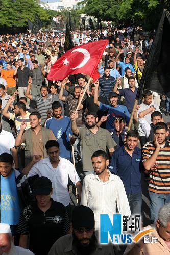 5月31日,巴勒斯坦民眾在加沙城舉行集會,抗議以色列襲擊國際救援船隊(duì)并造成重大人員傷亡。新華社發(fā)