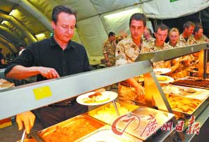 卡梅倫在軍營中吃午餐。