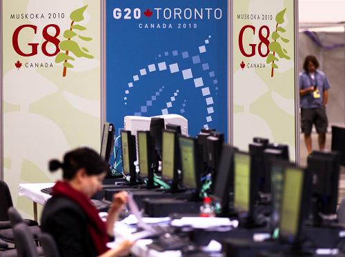 6月22日,在位于加拿大多倫多的G8和G20加拿大峰會新聞中心,先期抵達的記者開始報道準備工作。當日,G8和G20加拿大峰會的新聞中心向媒體開放。G8和G20加拿大峰會將于6月25日至27日舉行。新華社發(fā)(鄒崢攝)