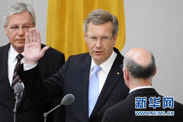 7月2日,德國新任總統(tǒng)武爾夫(中)在首都柏林正式宣誓就職。德國第十任總統(tǒng)武爾夫當(dāng)日在德國聯(lián)邦議院和聯(lián)邦參議院全體大會上宣誓就職。這位德國歷史上最年輕的總統(tǒng)承諾,他將致力于在社會各階層間構(gòu)筑橋梁。 新華社/法新