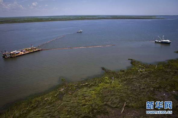 7月8日,在美國路易斯安那州斯萊德爾附近的龐恰特雷恩湖,工作船收集泄漏原油。美國得克薩斯州官員5日證實,該州東部海灘發現來自墨西哥灣漏油油井的油球。這表明,墨西哥灣泄漏的原油已擴散至美國墨西哥灣沿岸所有5個州。當地媒體報道說,從東部的佛羅里達到西部的得克薩斯,報告發現油污的范圍已橫跨近900公里。新華社/路透