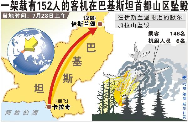 圖表:一架載有152人的客機(jī)在巴基斯坦首都山區(qū)墜毀 新華社發(fā)