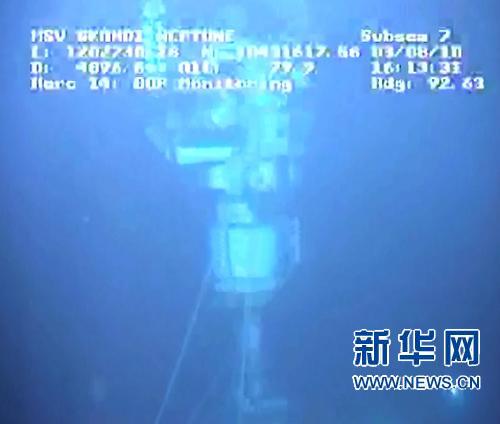 這張8月3日英國(guó)石油公司的視頻截圖顯示的是墨西哥灣海底漏油油井上的控油裝置。英國(guó)石油公司當(dāng)天在一份新聞公報(bào)中說(shuō),公司3日開(kāi)始實(shí)施“靜滅法”工程,封堵墨西哥灣漏油油井。所謂“靜滅法”就是把大量海底泥漿和水泥通過(guò)控油罩注入漏油井,以封住井口。新華社發(fā)
