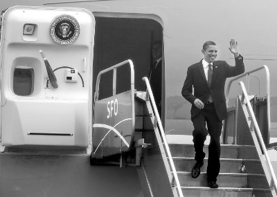 奧巴馬抵達舊金山,出席民主黨參議員的選舉籌款活動。