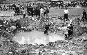 8月24日,尼泊爾村民與軍隊士兵在墜機地點收集飛機殘骸。