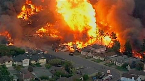 舊金山國際機場附近一處住宅區9日晚發生大火
