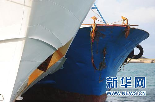 資料圖片:這張9月9日拍攝的照片顯示,在沖繩縣石垣港,被日本海上保安廳扣留,停靠在“與那國”號巡邏船旁的中國漁船(右)。新華社記者 季春鵬 攝