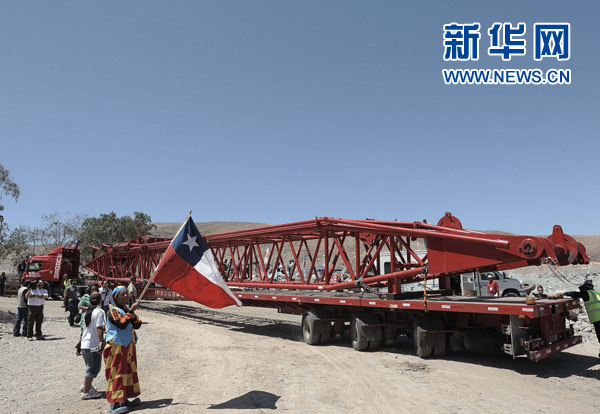 10月6日,運(yùn)載救援設(shè)備的卡車抵達(dá)位于智利首都圣地亞哥以北800公里的圣何塞銅礦。智利圣何塞銅礦8月5日發(fā)生塌方事故,33名礦工被困700米深的地下已達(dá)兩個(gè)月。救援行動(dòng)雖然困難重重,但是進(jìn)展順利,礦工有望在短時(shí)間內(nèi)升井獲救。新華社發(fā)(豪爾赫·維耶卡斯)