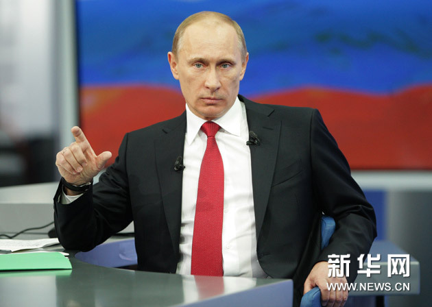 12月16日,俄羅斯總理普京在莫斯科參加電視、廣播和因特網直播節目。新華社/法新