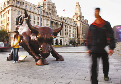 中國(guó)經(jīng)濟(jì)增長(zhǎng)一直超越全球多地。圖為上海外灘銅牛。(資料圖)