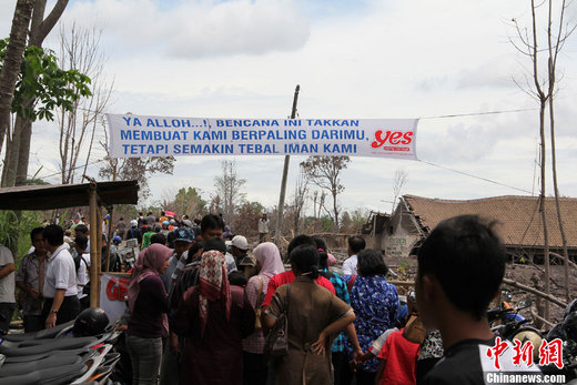 今年10月下旬,位于印尼日惹市的默拉皮火山在沉睡百年后,再次大規模數次噴發,并造成300多人罹難、成千上萬人受傷,數十萬人撤離家園。默拉皮火山11月份停止噴發后,來自印尼各地的民眾紛紛來此旅游觀光;鹕侥_下一個叫GUNGAND被火山巖漿埋沒的村莊,每天來旅游的人數逾5000人。圖為當地民眾周日紛紛前往該村察看災后情景。中新社發 顧時宏 攝