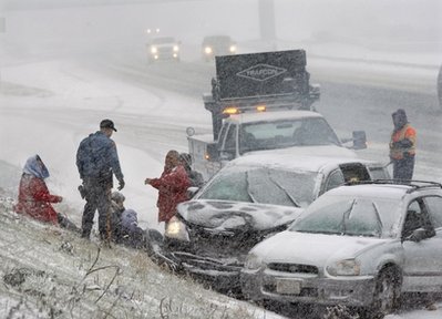 在華盛頓州的交通部出動(dòng)了200輛撒防滑鹽沙的貨車、鏟雪車等清理路面的15厘米積雪。