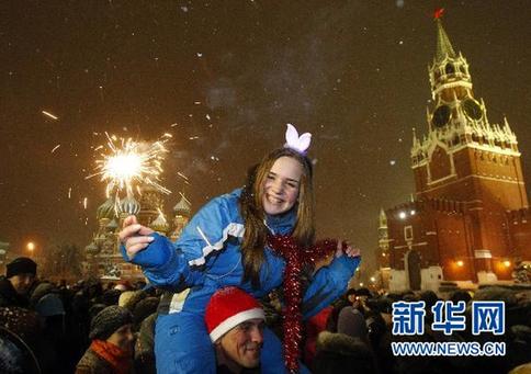 12月31日,在俄羅斯首都莫斯科,人們參加迎接新年的慶祝活動。 新華社/路透