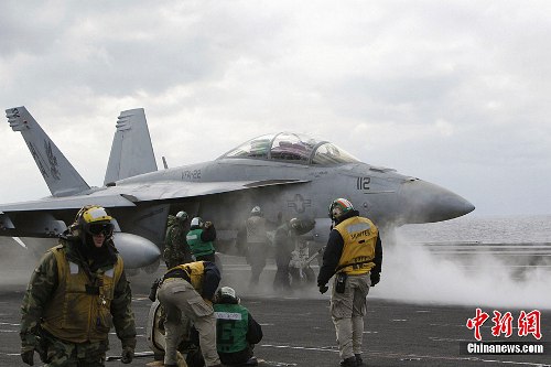 此次向媒體公開的信息顯示,在“卡爾·文森”號甲板上,FA-18戰斗機與EA-6B電子作戰飛機以1分鐘的間隔反復演練艦上起降。美第一航母戰斗群司令佩雷斯強調,此次演習“是展現日美在太平洋地區穩固同盟關系的有力信號。”