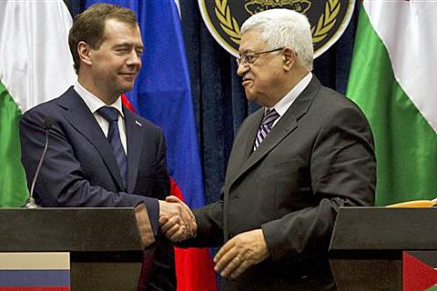 據(jù)外電報道,俄羅斯總統(tǒng)梅德韋杰夫18日對巴勒斯坦約旦河西岸進行了一次罕見的訪問,并重申俄方承認獨立的巴勒斯坦國。