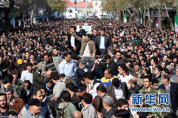 1月23日,伊朗總統艾哈邁迪-內賈德在拉什特向支持者揮手致意。伊朗總統艾哈邁迪-內賈德23日發表講話時說,伊朗希望與國際社會繼續就伊朗核問題進行談判。伊核問題有關六國——美國、英國、法國、俄羅斯、中國和德國與伊朗之間的新一輪談判22日在土耳其伊斯坦布爾結束。由于分歧巨大,談判未取得實質性成果。新華社/路透