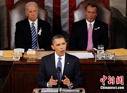 1月25日,美國華盛頓,美國總統(tǒng)奧巴馬在國會(huì)發(fā)表2011年國情咨文。