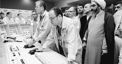 伊朗布什爾核電站的技術人員正在工作。人民圖片