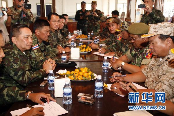 2月5日,柬泰兩國高級指揮官在柬埔寨奧多棉吉省安隆汶邊境口岸柬方一側(cè)舉行會談。會談后雙方表示已就避免再次發(fā)生武裝沖突達(dá)成一致。柬埔寨王家軍第四軍區(qū)司令謝蒙(右一)和泰國皇家軍泰國第二軍軍長塔瓦猜(左一)參加了當(dāng)天的會談。經(jīng)過90分鐘的會談,雙方達(dá)成了3項共識:停止在兩國邊境容易引起爭議的地方修筑道路;推動兩國聯(lián)合邊界委員會盡快進(jìn)行勘界工作;雙方不再調(diào)動軍隊并不再發(fā)生武裝沖突。新華社發(fā)(索萬納拉攝)