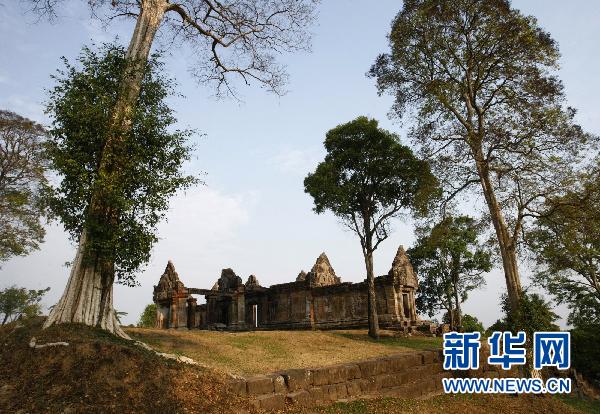 這是2009年3月13日拍攝的柬埔寨北部與泰國交界處的柏威夏寺建筑遺跡。新華社/路透