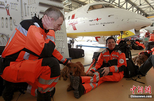北京時間3月11日13點46分,日本本州島附近海域發生里氏8.9級地震,震中位于宮城縣以東太平洋海域,震源深度10公里,東京有強烈震感。圖為瑞士國際救援隊即將啟程前往日本地震災區救援。