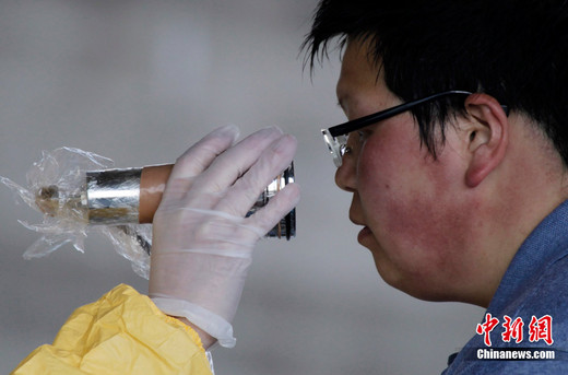 日本首相菅直人周一(14日)表示,在大地震和海嘯中受損的核電站仍然處于“警戒”狀態。東京電力公司周一向政府報告說,福島第一核電站輻射程度再次超過法定劑量。福島縣第一核電站在地震發生后已經關閉,但是因反應堆冷卻系統發生故障導致輻射超標。圖為在福島縣二本松,民眾隔離接受輻射檢測。