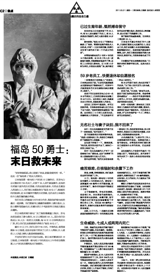 “我的父親還有半年便退休,他說要去那里時,我拼命忍住眼淚……他說,核電的未來,就在于我們怎樣處理這件事,他會帶著使命感前去……他似乎不是那種能做大事的人,但今天,我真為他感到自豪。”這是來自日本,一位女兒的微博。