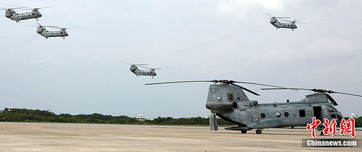 3月12日,美國駐日本沖繩普天間空軍基地的海軍陸戰隊派遣重型直升機前往地震災區救援。