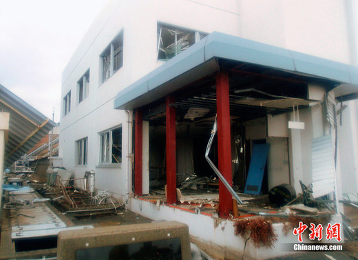 日本原子能安全保安院2011年3月23日發布的照片顯示了福島第一核電站內部建筑物受損情況。