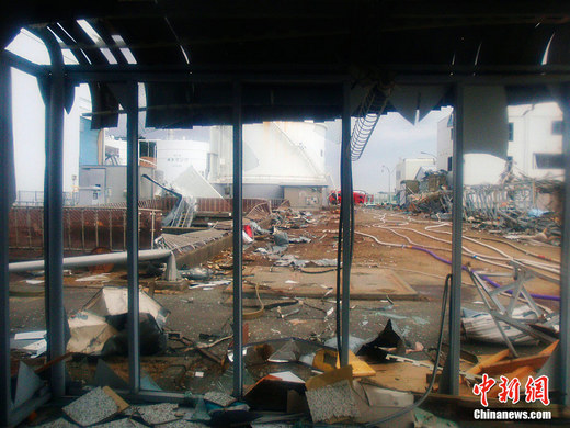 日本原子能安全保安院2011年3月23日發布的照片顯示了福島第一核電站內部建筑物受損情況。圖為福島第一核電站1號反應堆控制室。