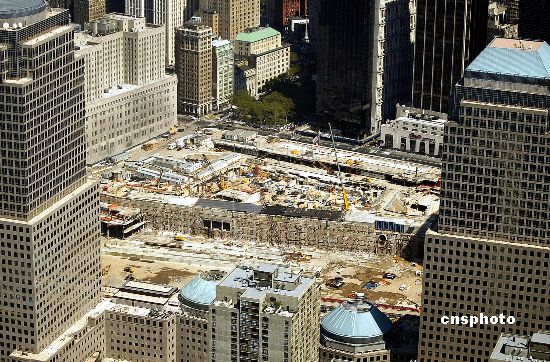 圖為從空中俯瞰世貿遺址。(資料圖) 中新社發 Ic/cnsphoto 攝