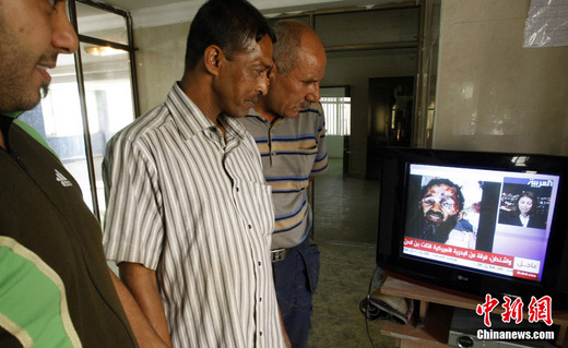 當?shù)貢r間5月2日,伊拉克巴格達,當?shù)孛癖娛湛搓P(guān)于本·拉登死訊的新聞。