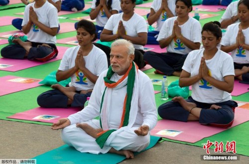中新網6月22日電 今年6月21日是第二個“國際瑜伽日”。在印度總理莫迪的大力倡議下,聯合國于去年設立了這個節日,在全球掀起一股瑜伽風潮。作為瑜伽愛好者,莫迪一直大力推廣這項運動,尤其是在出訪的時候,向其他國家領導人大力推薦,連俄羅斯總統普京也被說動,表示愿意嘗試瑜伽。